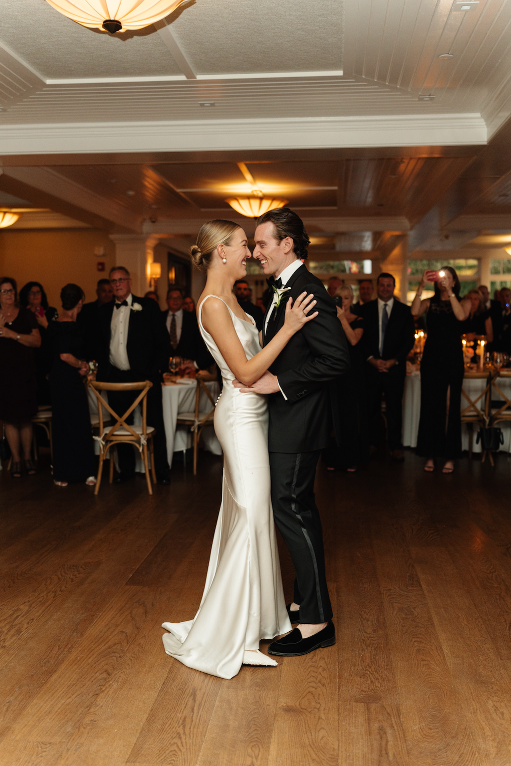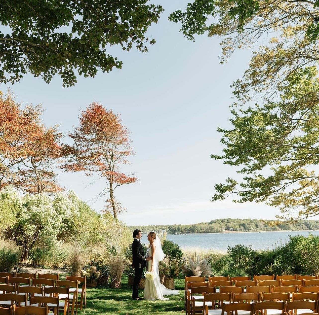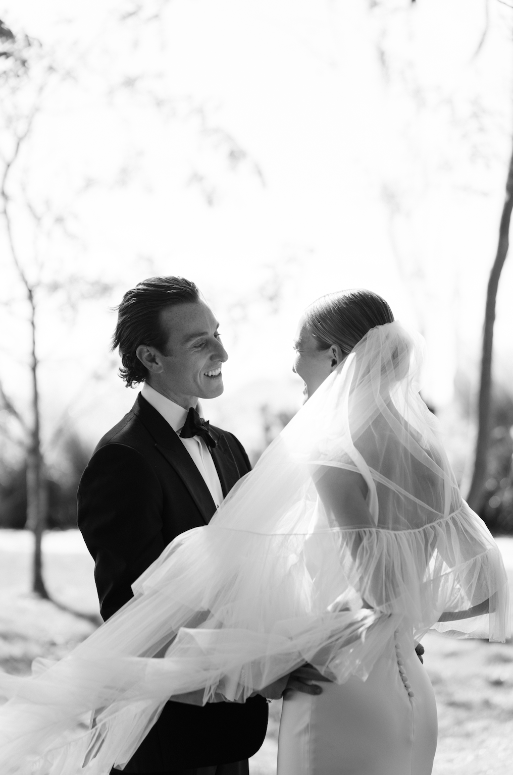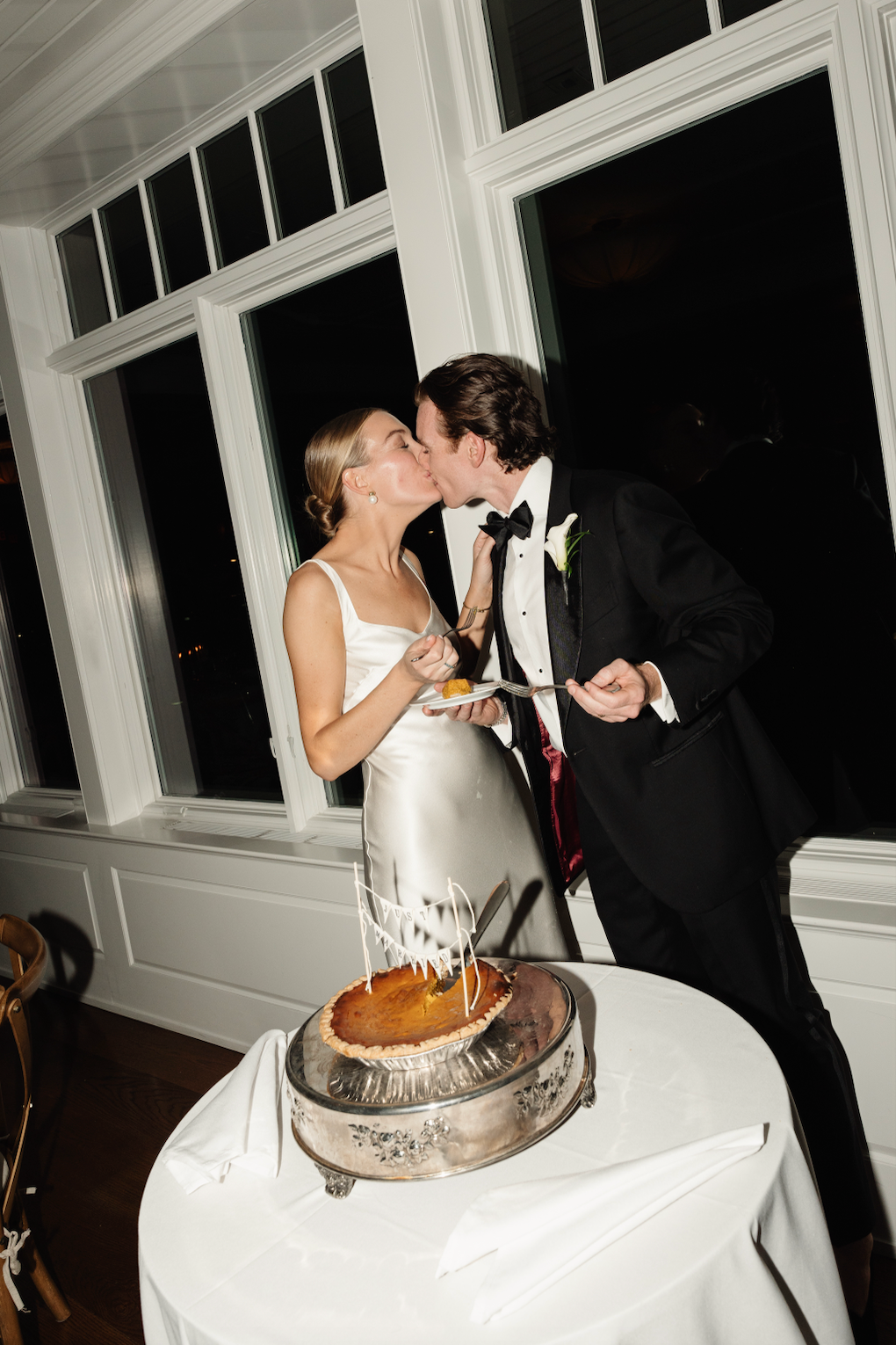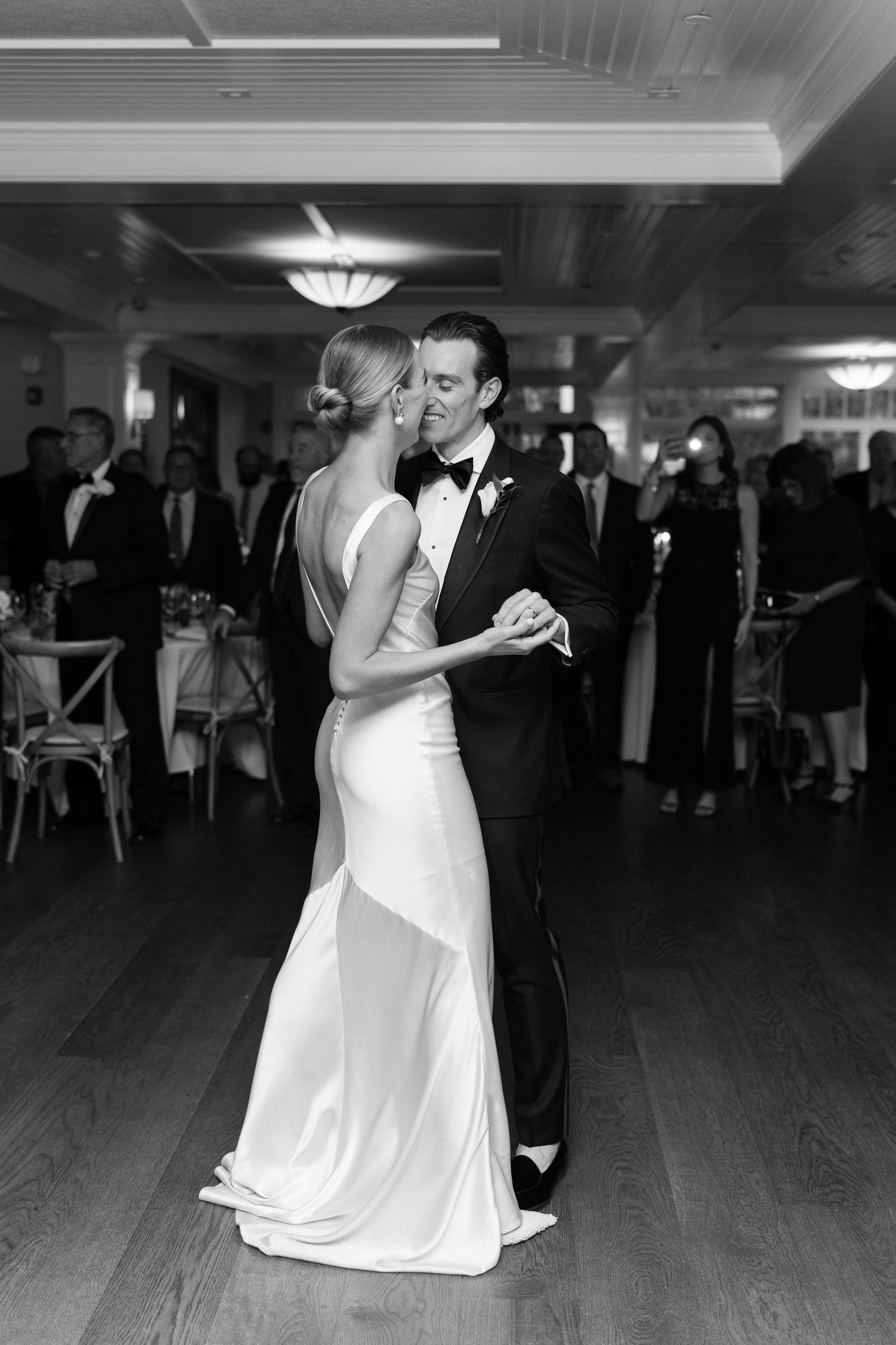 We love the old world timeless feel of Cat and Connor's gorgeous wedding at the Picnic Bay Yacht Club in New York. Cat was inspired by Carolyn Bessette Kennedy's timeless style and so there was only one gown for her. She wears STYLE 008, the gown inspired by Carolyn's iconic 90s wedding dress. Beautifully styled with STYLE 102 our flounce veil and a pair of NEOUS pumps.