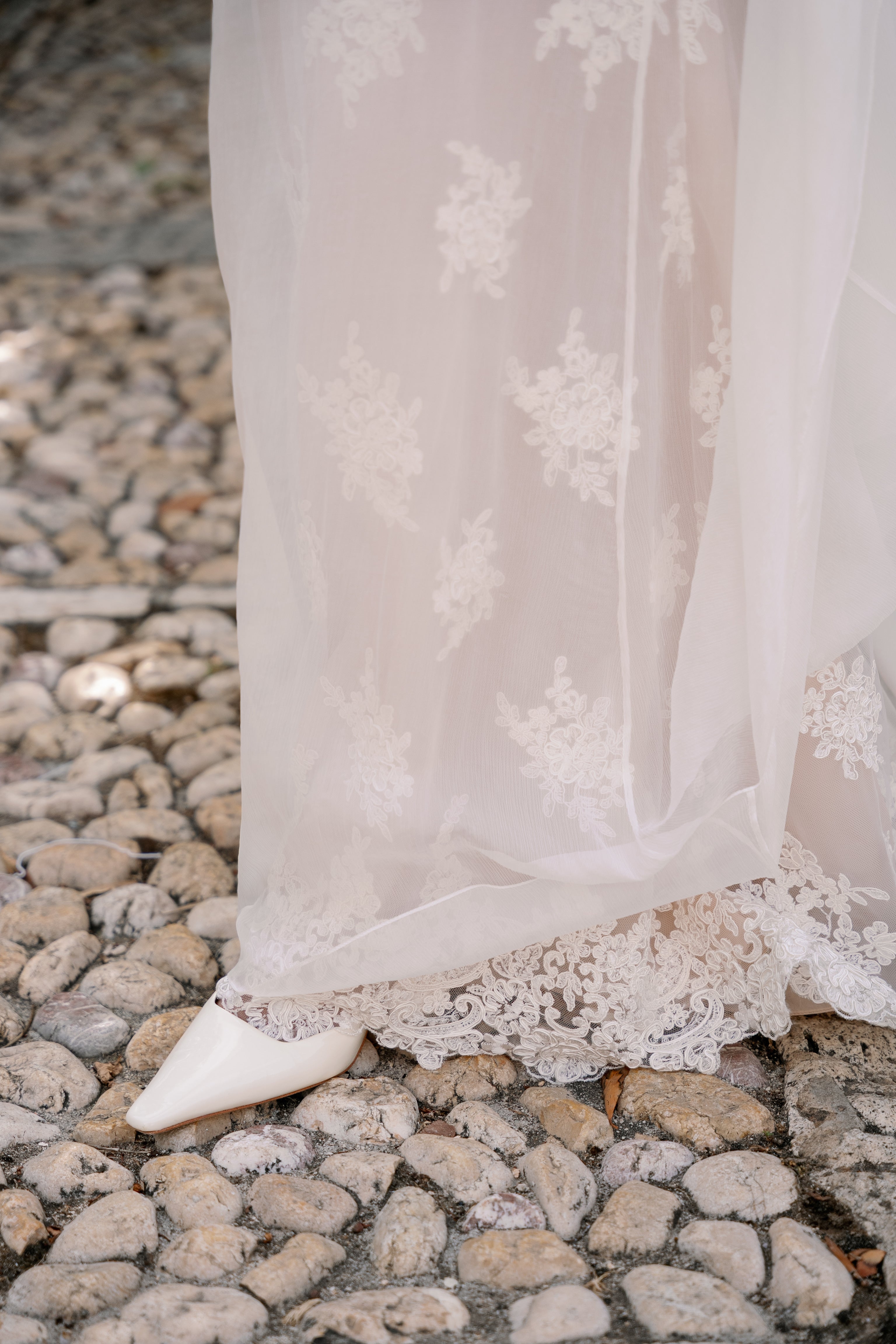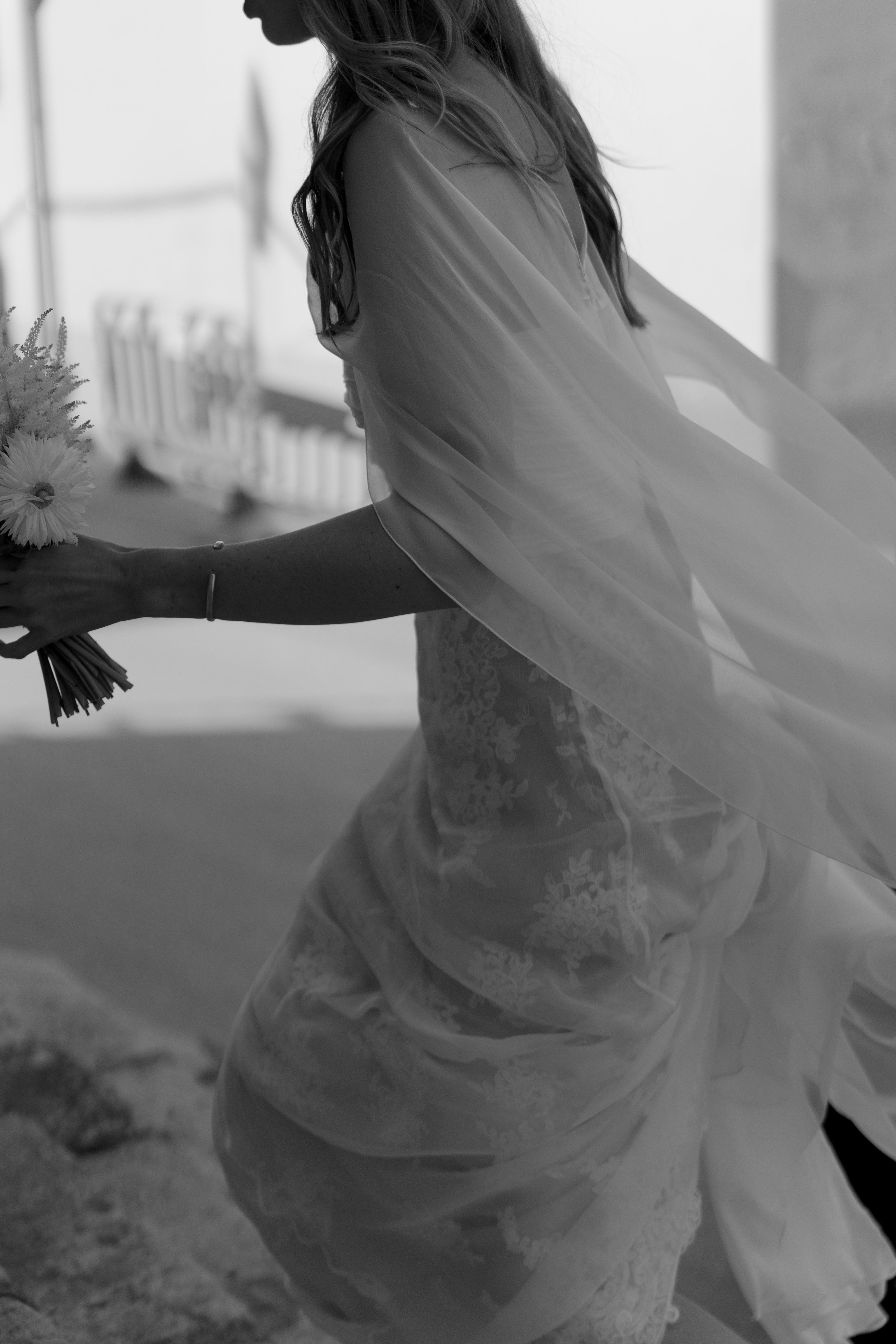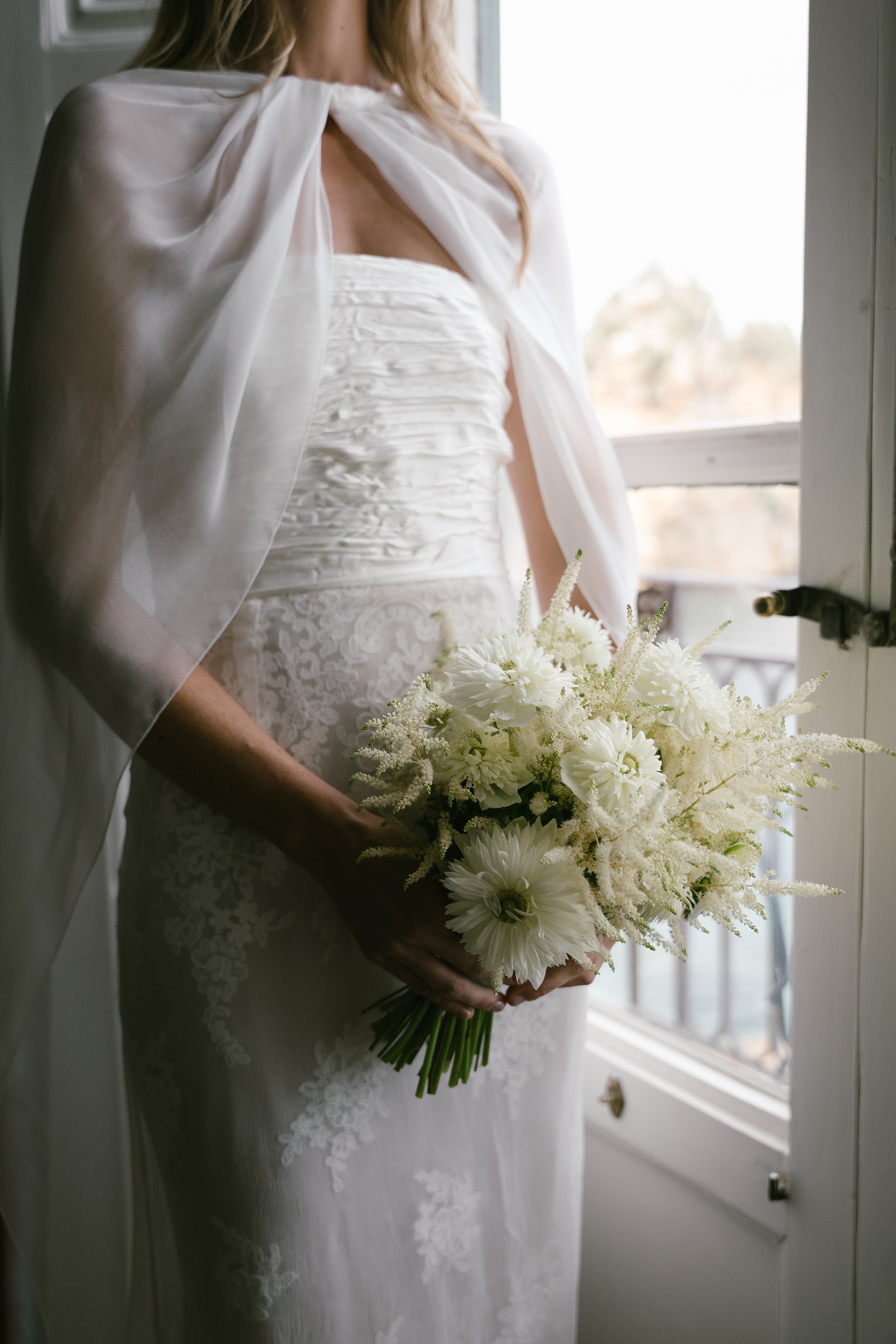 ”As soon as I tried STYLE 130, I knew it was the one. The beauty is in its simplicity, but upon a closer look, its intricate detail is what makes the dress extra special. The cape caught the light so beautifully, and complimented the dress subtly, without taking any of its beauty away.”