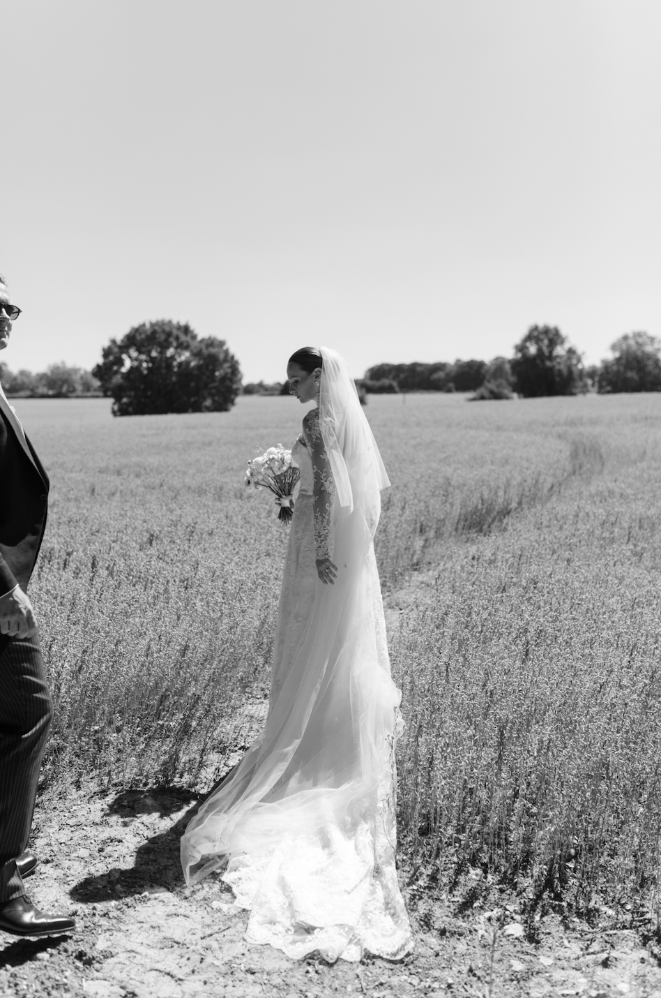 This summer, I had the joy of attending my sister Eve’s wedding — a beautiful, sun-drenched celebration in the English countryside. She wore a bespoke OWN gown: a corseted lace dress that Jess and I designed and hand-made in our atelier over many months.