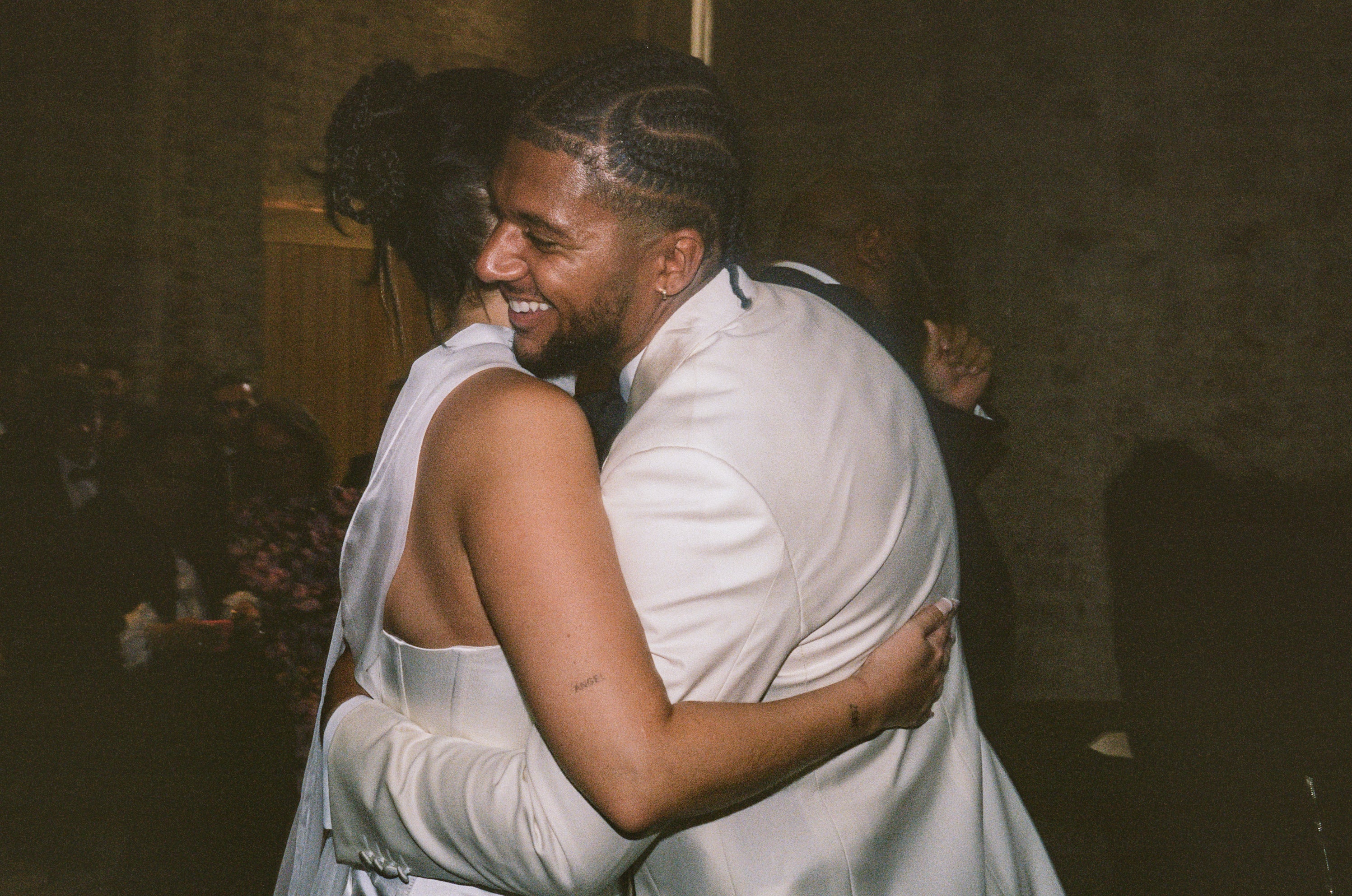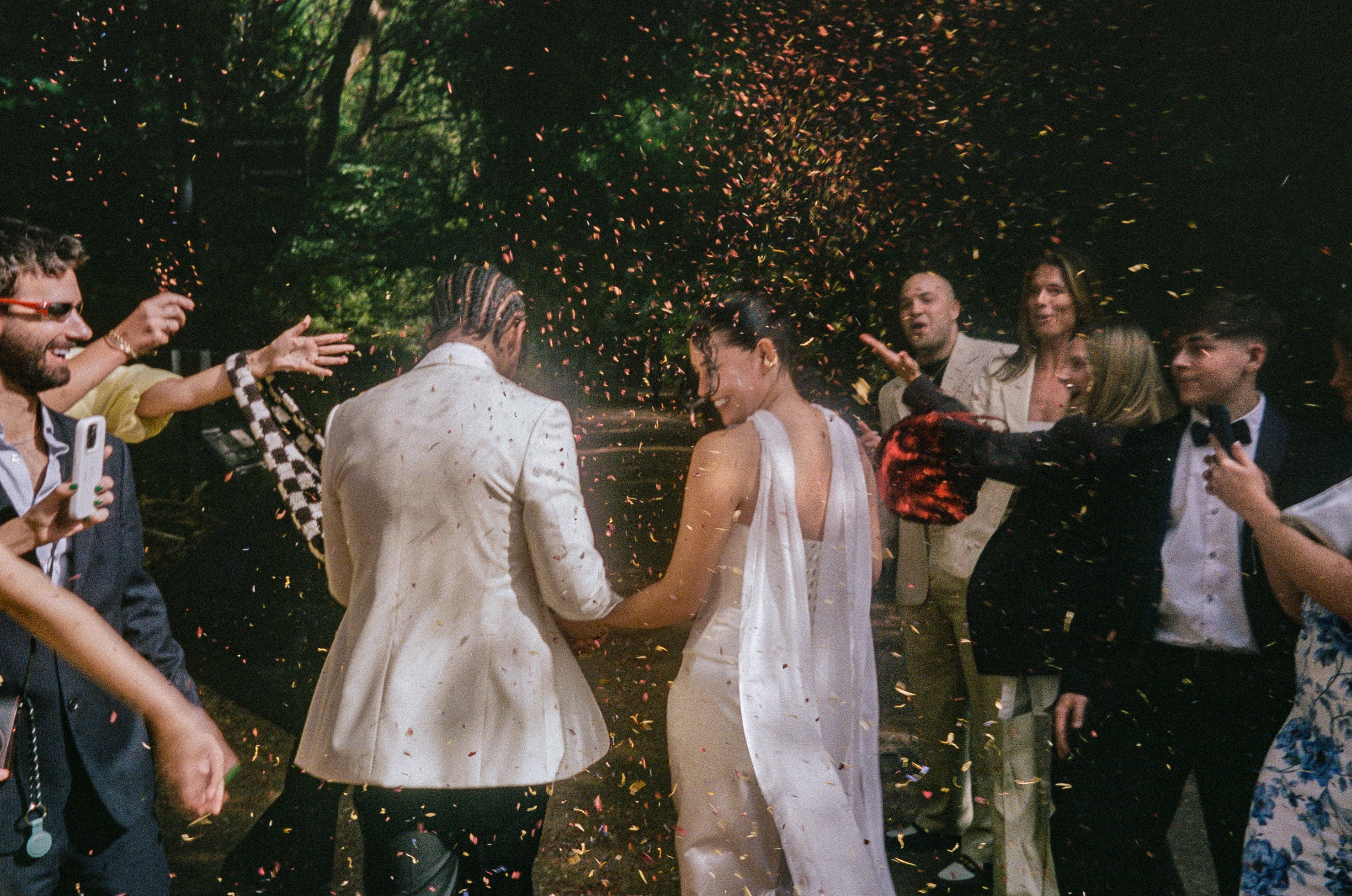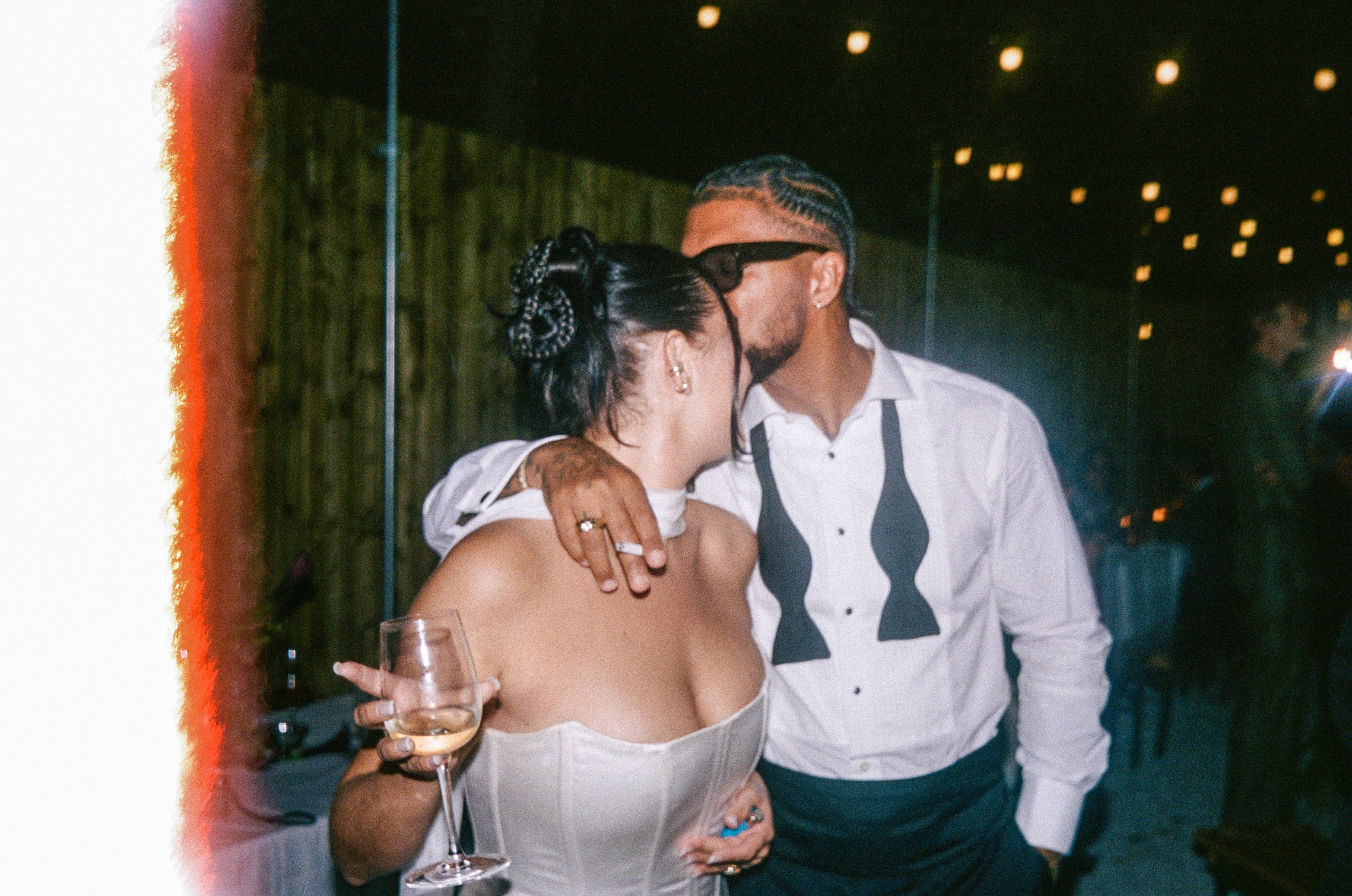 “I knew I wanted to wear a dress from OWN ever since I came to the studio with my friend for her wedding appointment, a year before I started working here. For my own appointment, I had the pleasure of inviting my mum and friends, and one of our lovely stylists hosted the session. I tried on a selection of four dresses and honestly, I would have been happy wearing any of them! But as soon as I put on the corset and skirt at the end my mum and friends said it was a no-brainer. It felt so me, and I loved it even more knowing it was a two-piece with no train, perfect for an East London wedding. I styled it with vintage Prada mules and a chunky Jean Paul Gaultier ear cuff.”