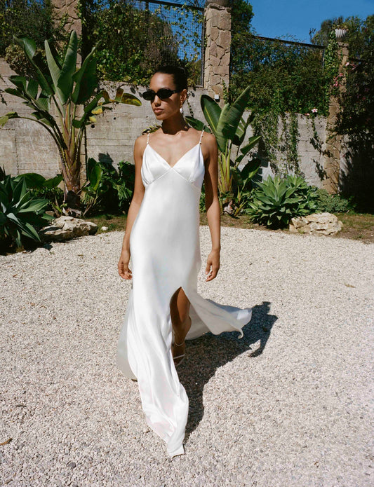 STYLE 068 // SILK SATIN PEARL STRAP DRESS