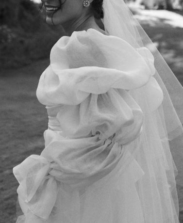 Creating a bespoke look with us is an incredibly special and personal experience. Every stitch, every fold, every special detail is considered and totally unique to you. We take on a limited number of bespoke commissions each year as a phenomenal amount of work goes into crafting each and every piece; from the design through to hand making your piece, we work with you every step of the way to bring your vision to life.