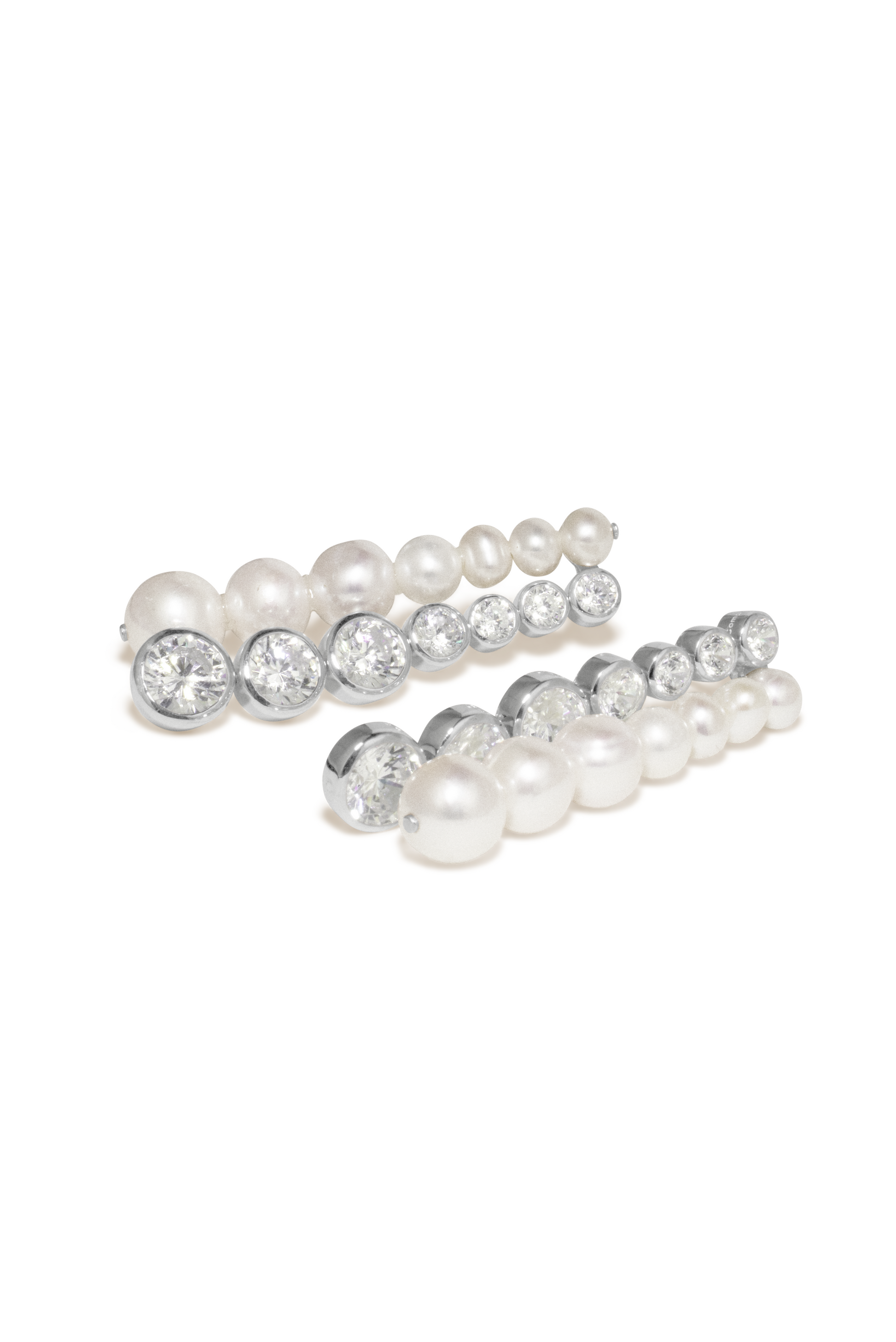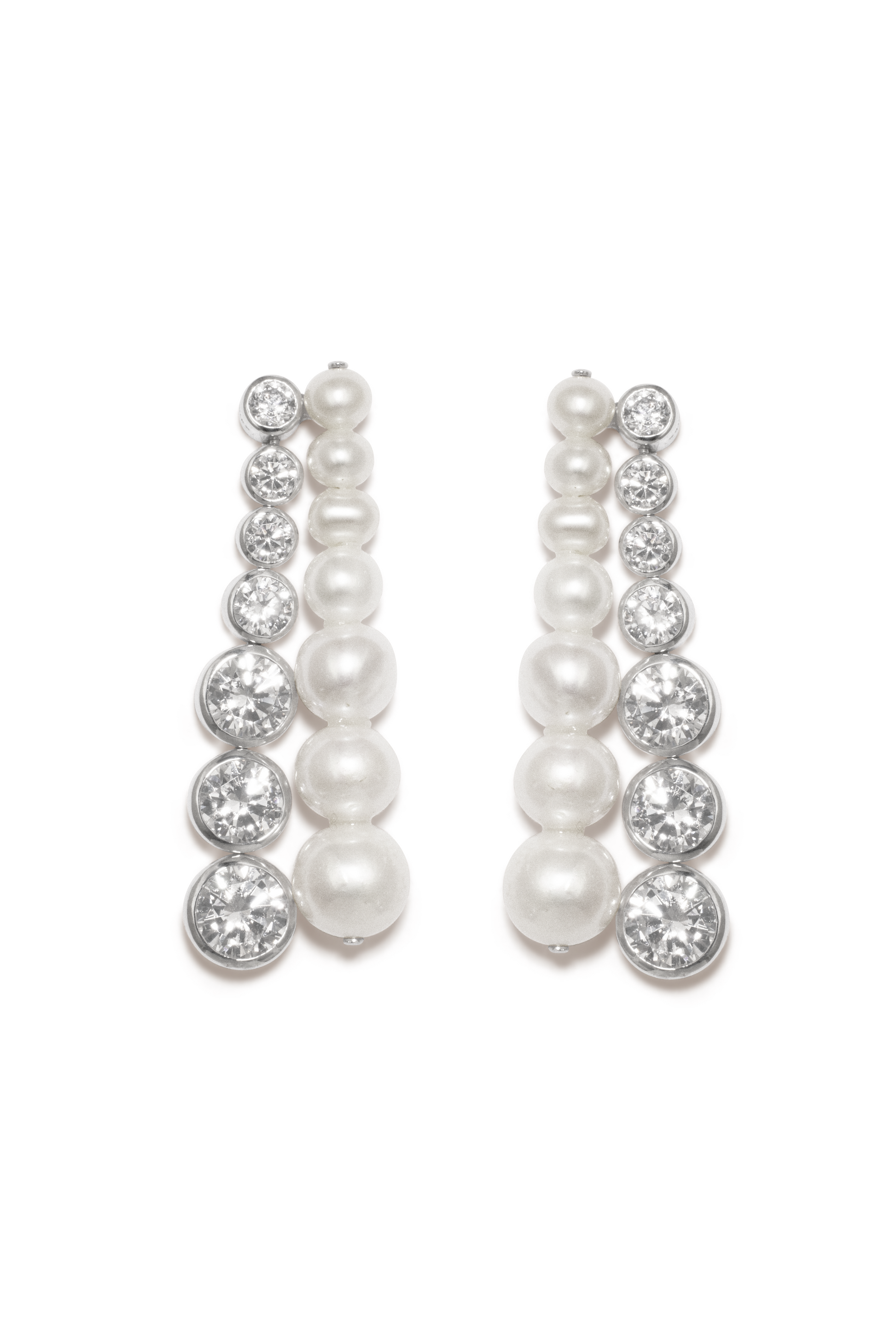 Pearl and Cubic Zirconia Platinum Plated Earrings