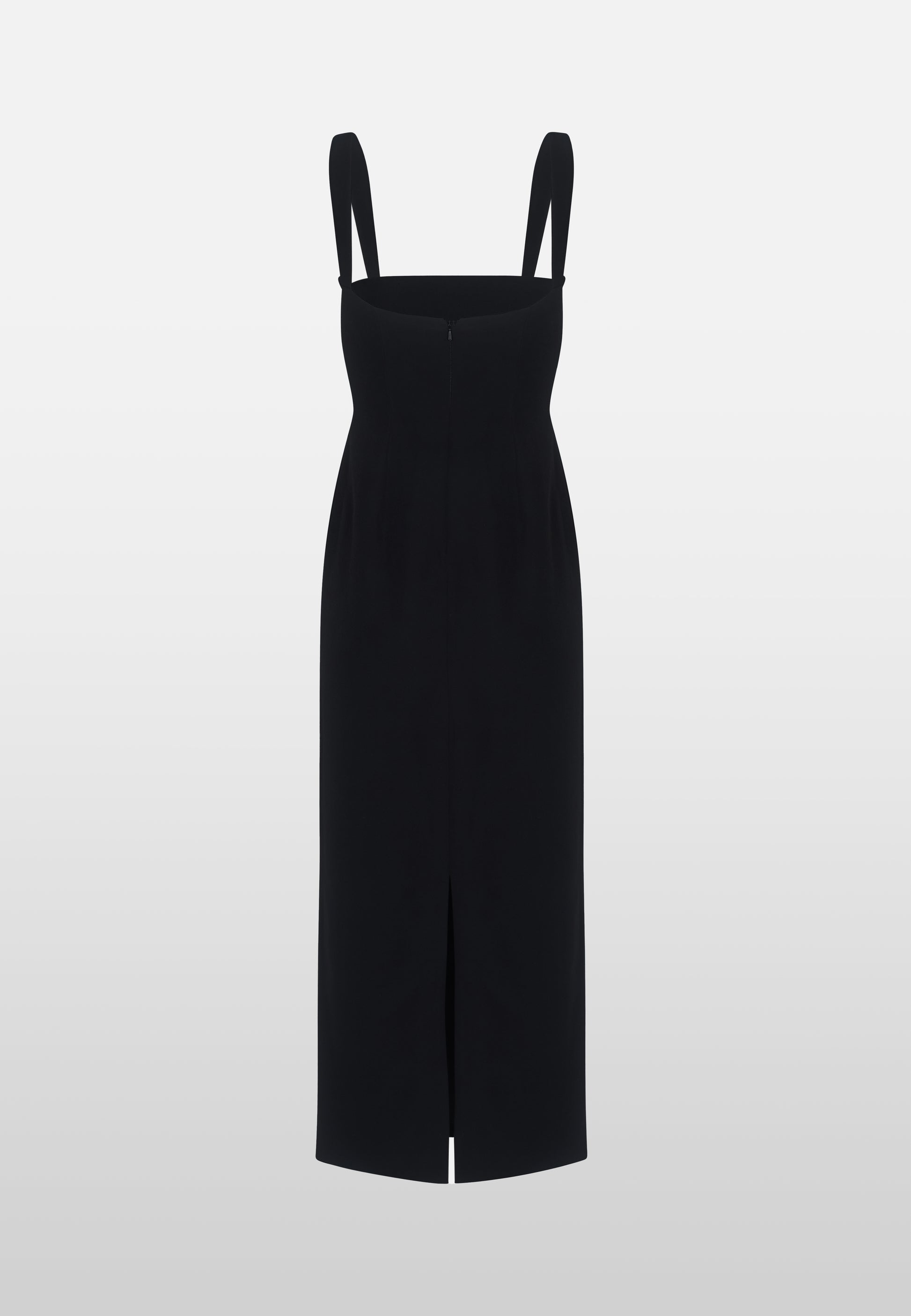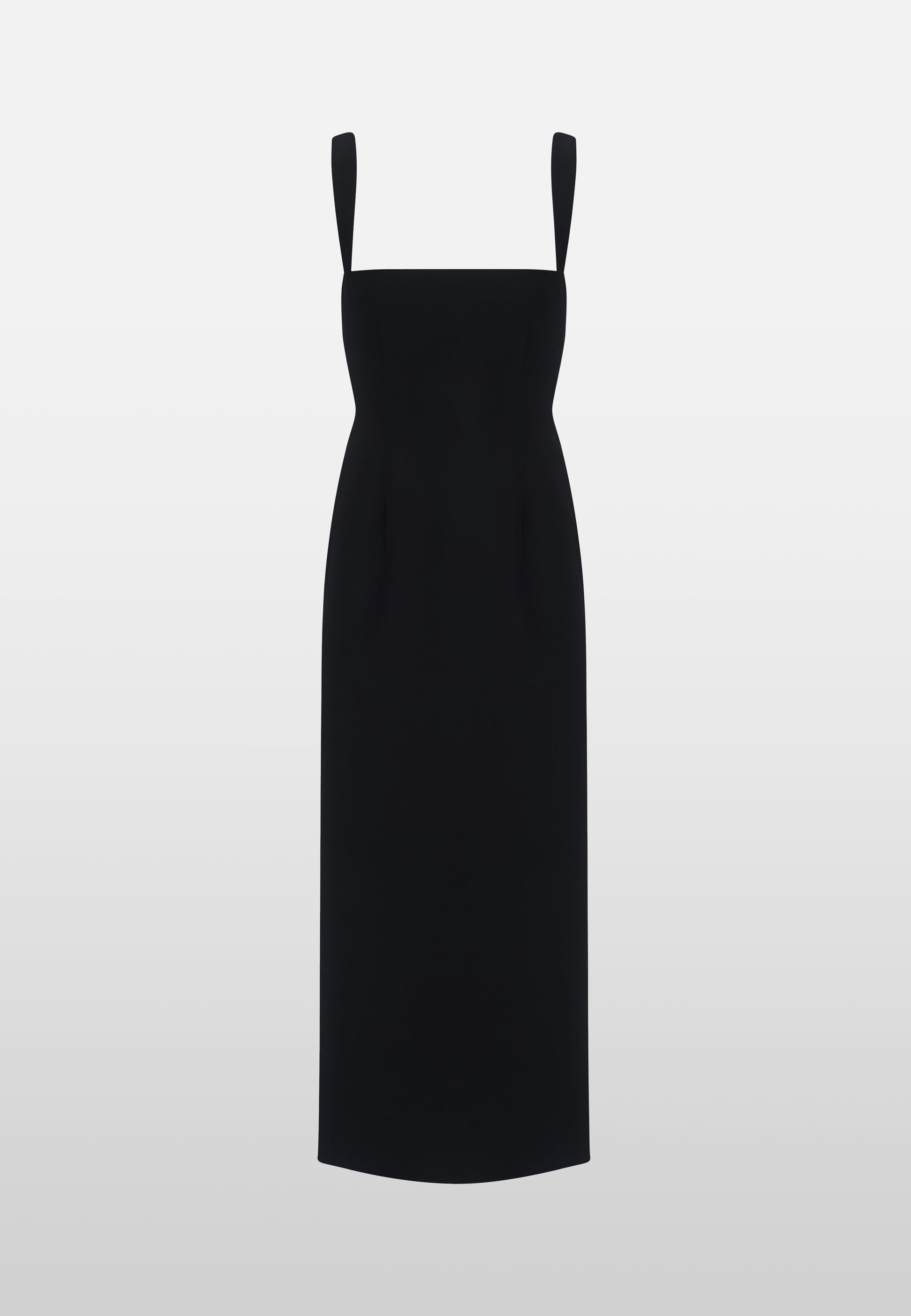 Understated, sculpted and endlessly versatile, THE ROAD TO NOWHERE DRESS is a classic ankle-length column gown crafted from smooth structured crepe for a clean, body-skimming fit. The square neckline with wide-set tapered straps creates a sharp, modern frame through the shoulders and décolletage, while the precise seaming through the bodice enhances its streamlined silhouette.