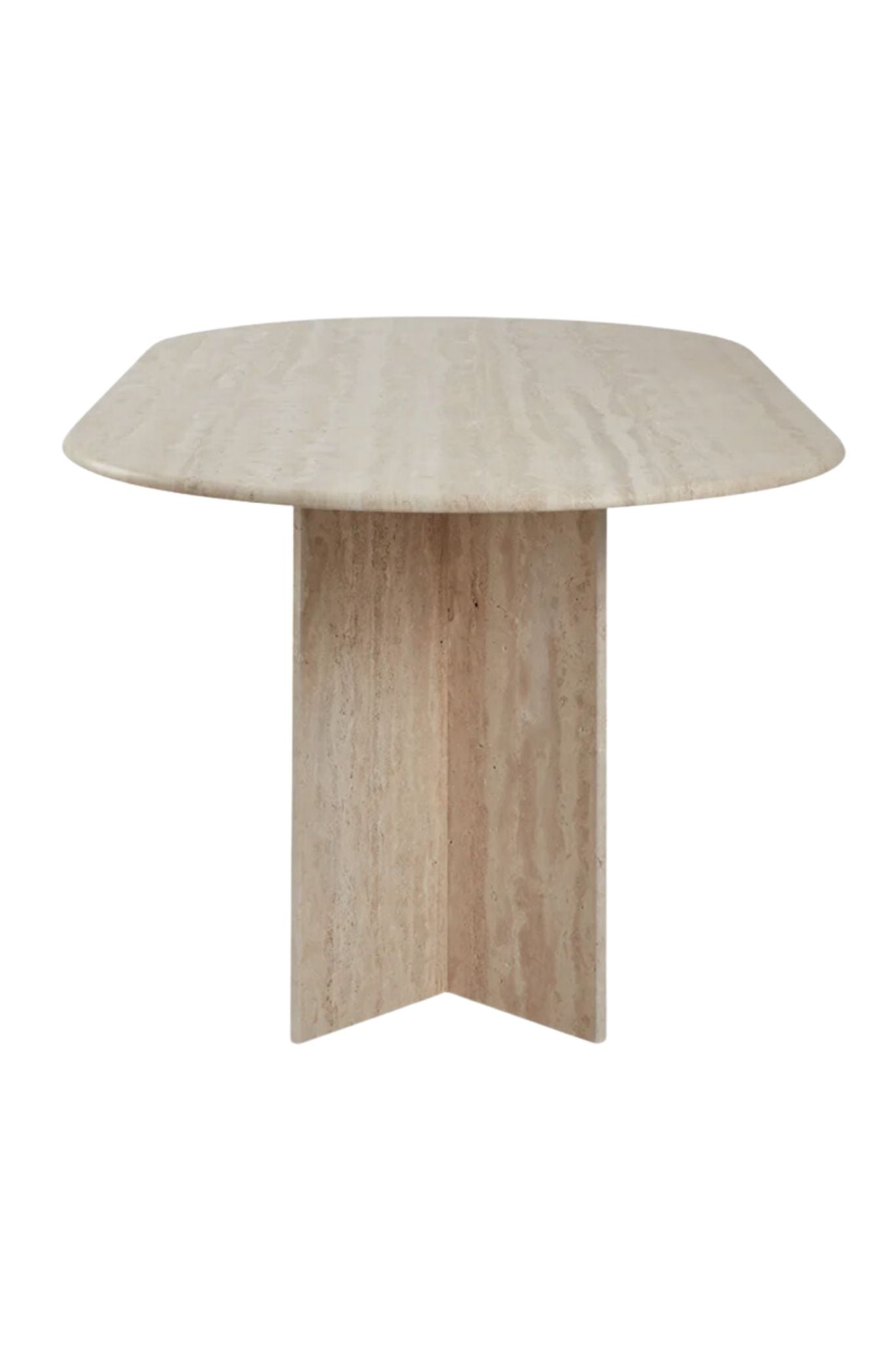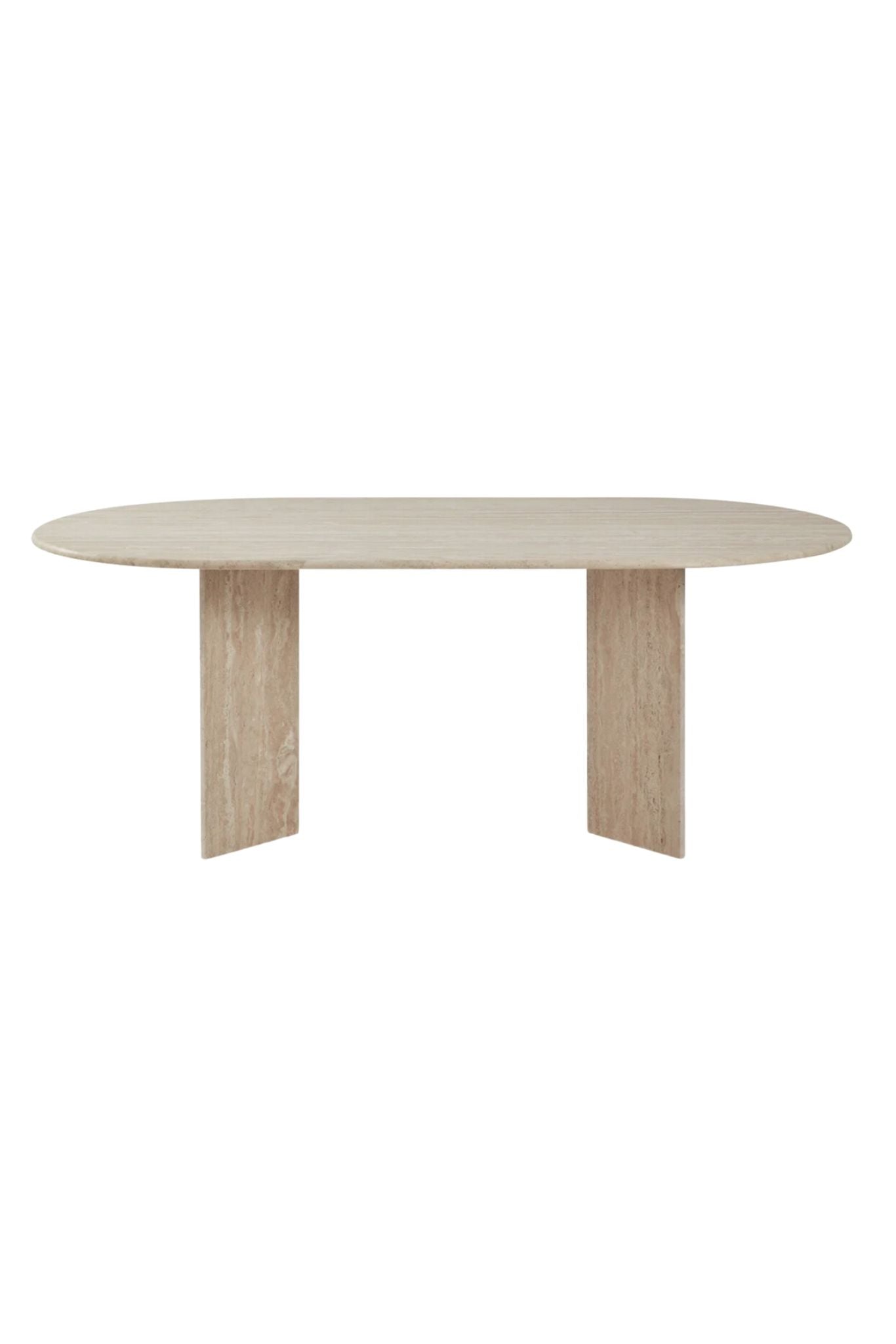 Combining the strong lines and bold geometric shapes found in Art Deco architecture, the smooth, tactile pill-shaped oval is paired with contemporary angular ‘V’ shaped bases for a statuesque and commanding design.