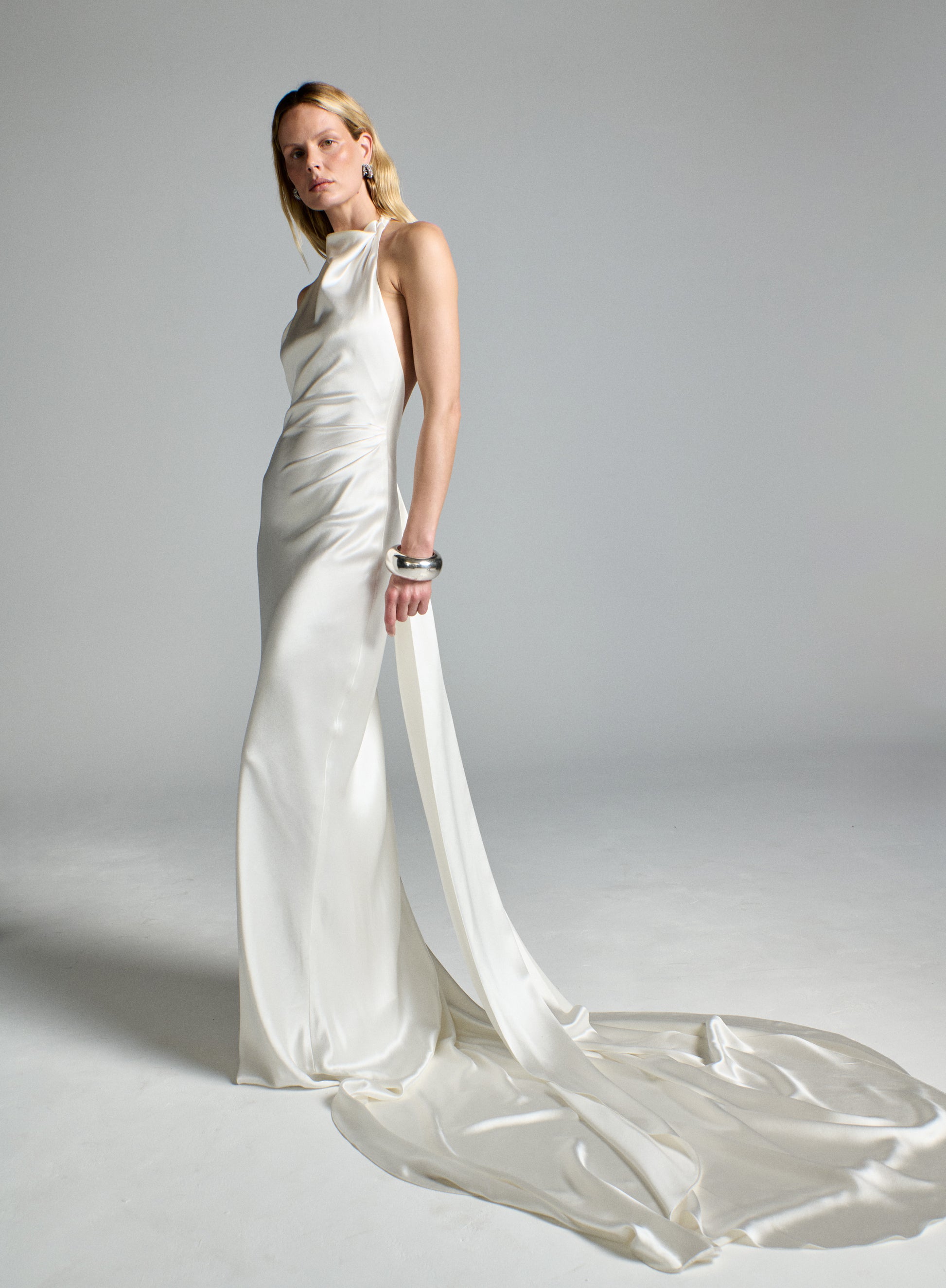 STYLE 151 // SILK SATIN DRAPED HALTERNECK GOWN