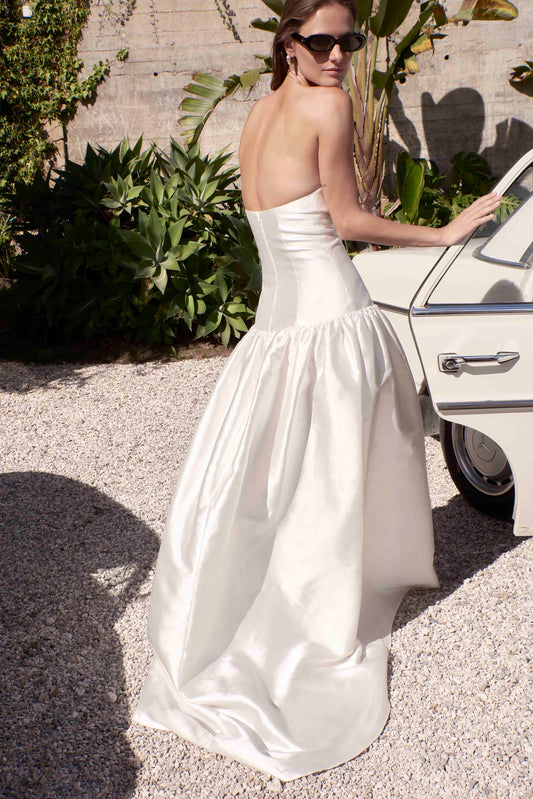STYLE 054 // STRAPLESS SILK MIKADO DROP WAIST DRESS