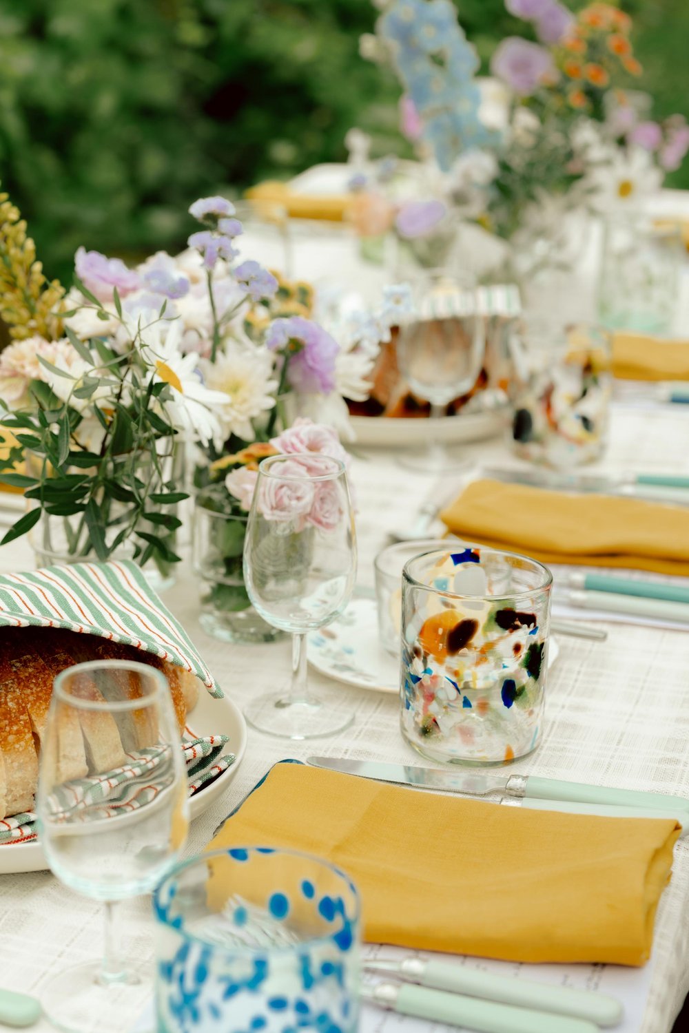 Mouth-blown multicolour terrazzo tumblers from the beautiful Balearic Islands.